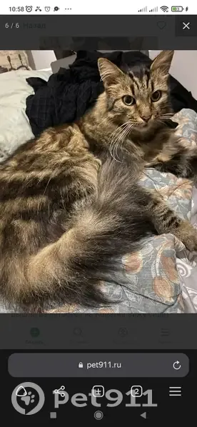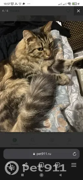 Кот Семён. 9 лет. Окрас черепаховый. Преобладает темно- коричневый и чёрный. Живот бежево- кремовый с пятнами. Ближе к задним ногам редкая шерсть. Глаза жёлтые. Похож на мейн-куна или норвежскую лесную. Очень ласковый. Идёт почти ко всём. Ластится. Даётся гладить. Хвастается и любит, когда его хвалят. Летом гуляет один - охотится на мышей.