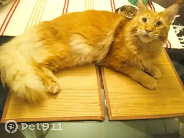 6 октября в 18 часов спрыгнул с балкона и потерялся кот породы мейн-кун. Рыжий, с белым брюшком. Кот страдает хроническим инфекционным ринотрахеитом (обильные слизистые выделения), сопит носом, а также диско спондилезом поясничного отдела позвоночника. Кот нуждается в постоянном ветеринарном контроле и лечении. Вознаграждение гарантирую!