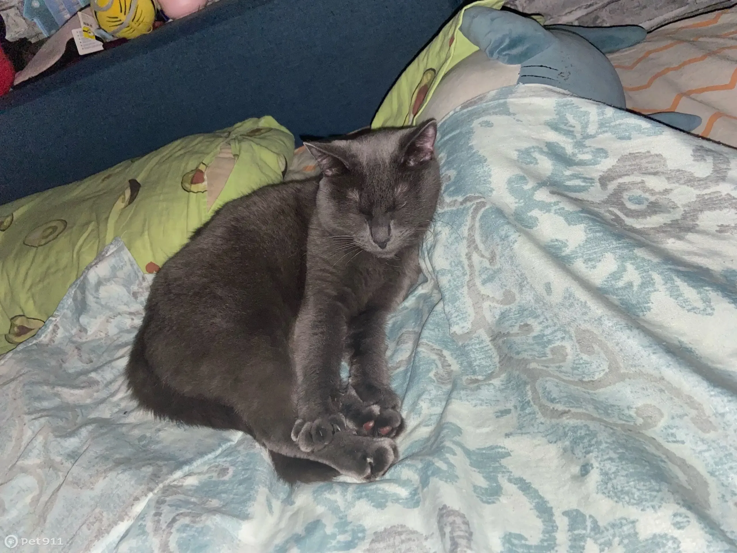 Кошка темно-серого цвета, девочка, 9 лет, стерилизована. Убежала в подъезд, не заметили…. Вокруг дома все просмотрели, может быть спряталась в подвале.