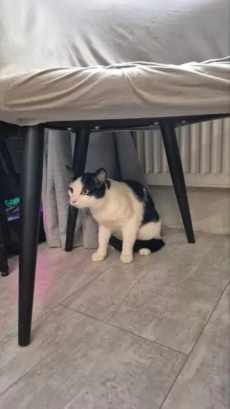 Кошка черно-белая,белые лапы, черное пятно справа у носа. Откликается на Иви или Майка. Выбежала в подъезд и пропала.