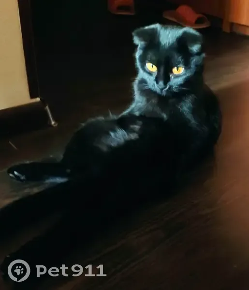 Девочка по кличке Багира,4 года, вислоухая Британка, полностью чёрного цвета, блестящая шерсть, глаза светло-коричневые. Выпрыгнула в окно. Длиннее,чем обычные кошки,стерелизована, ходит прижавшись к земле, на правой задней лапке выпячивается коготь, сломан средний пальчик.