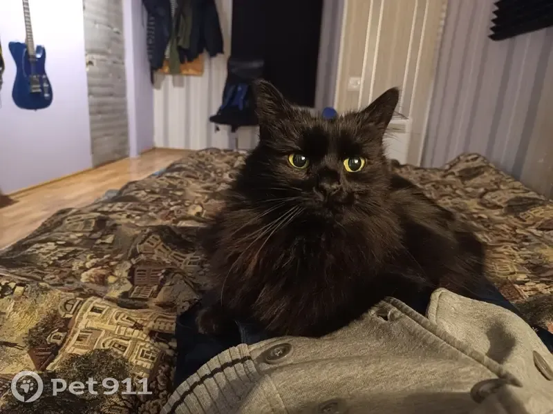 Черная, пушистая кошка, снизу слегка бурый окрас, девочка, 13 лет, скорее всего выпала из окна третьего этажа в ночь с 13 на 14 июля, может быть травмирована, нашедшему вознаграждение!