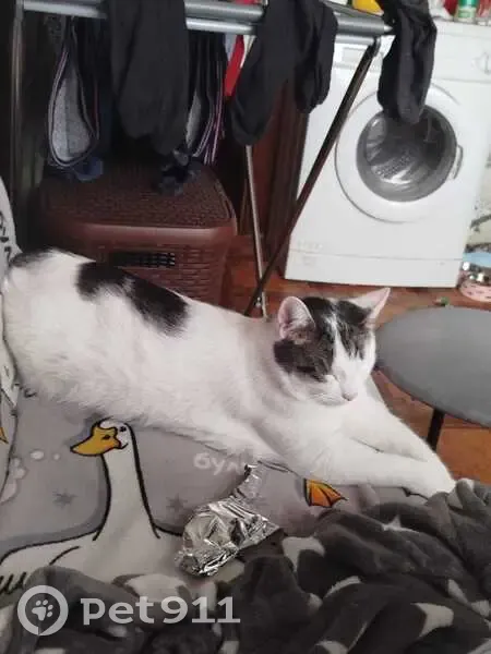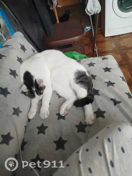 Белый цвет, серые пятна на спине и голове, чёрный хвост.Имя Тимон, очень пугливый, ищем и ждём гарантированное вознаграждение