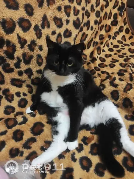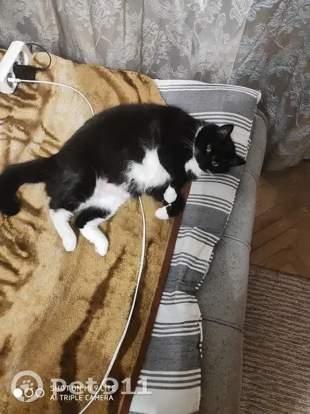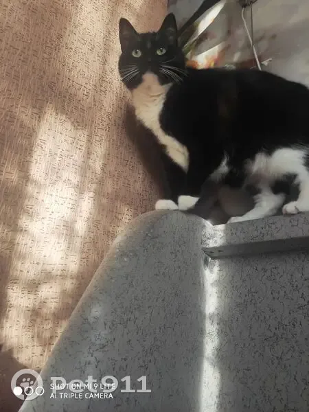 Муся - чёрно-белая кошка упитанного телосложения, белое пятнышко на лбу, белый подбородок, Верхняя губа и нос чёрные, белый симметричный рисунок на пузике и грудке, белые лапки без чёрных пятен. Сорвалась с окна ночью и убежала. Более 5 лет всё было нормально и дальше подоконника на окно она не лезла.