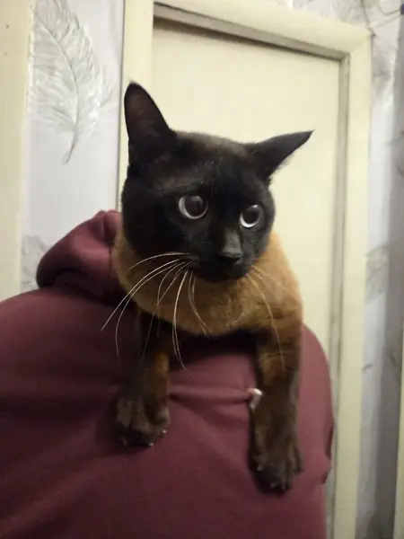 Выпрыгнул с балкона. Черные лапы , хвост и голова. Тайская порода.