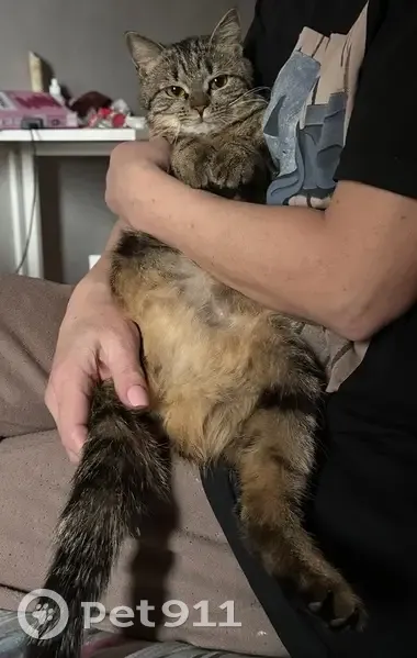 Отличительная особенность Маси - у нее всего три лапы, нет одной задней лапки. Она серого окраса с черными полосками и пятнами, Скорее всего, случайно выпала из окна, пока никто этого не видел. Довольно боязливая, пугается любых звуков и шорохов, но на свое имя должна откликаться, на контакт с людьми идет. Скорее всего, забилась куда-нибудь в сохранное место неподалеку, поскольку улица для нее большой стресс.