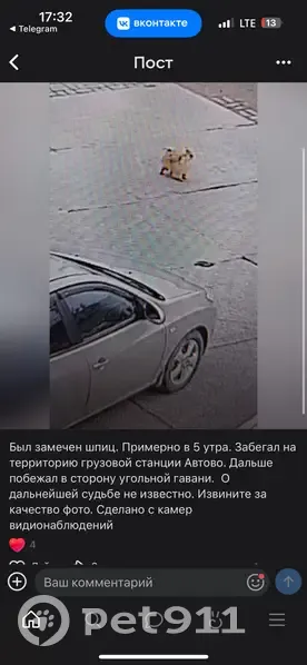 Шпиц мальчик маленького размера , весом 3,5-4 кг Окрас светло рыжий, будто немного подпалый Мордочка маленькая как у лисы или ежика Очень пуглив, к чужим на руки может не даваться и лаять. Может быть агрессивным. Он очень напуган. Выбежал из дома по невнимательности ребенка по адресу Червонного Казачества 14 подъезд 1 , был далее замечен на грузовой станции автово, потом побежал к метро Вернувшему вознаграждение гарантировано!
