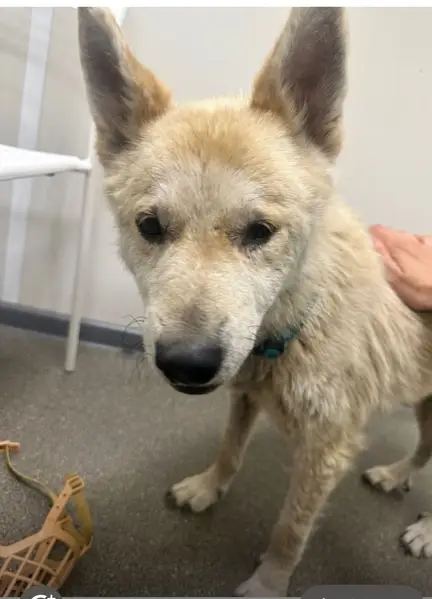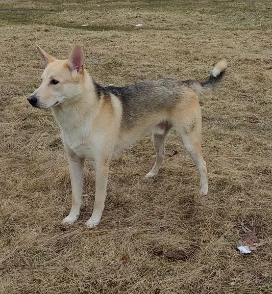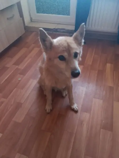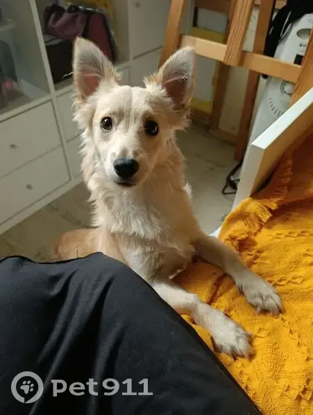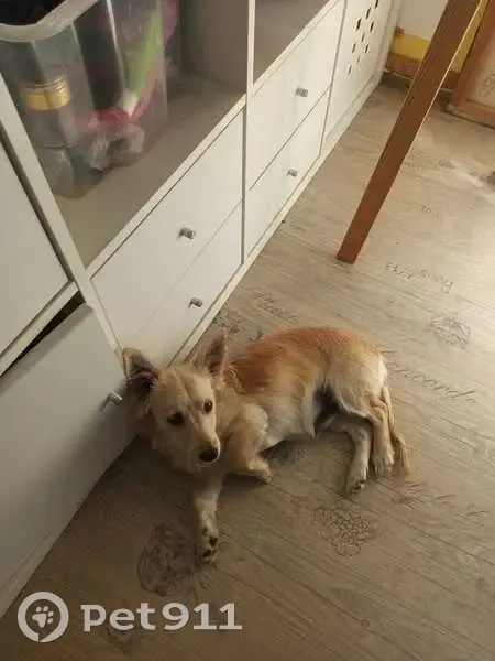 Светлого окраса, коротколапик, маленький 5-6 кг, уши большие, выдернул поводок с рулеткой и убежал. На ошейнике бирка с телефоном и рулетка. Очень пугливый, к людям не пойдёт , собак боится