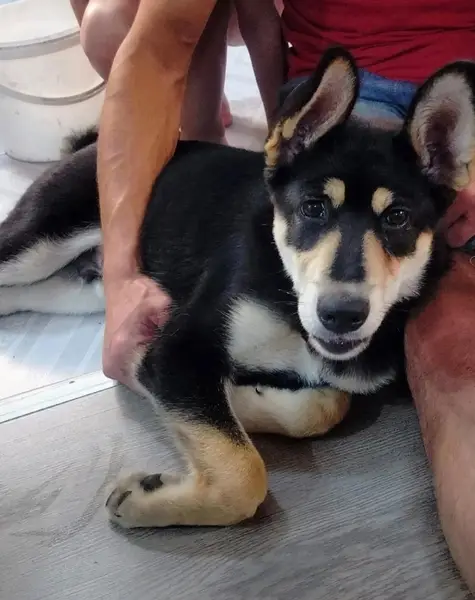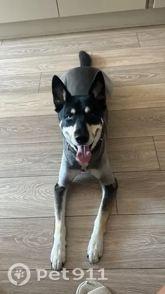 Подстрижен,серенький с чёрной полосой на спине, мордашка чёрная, разные глаза (синий и карий) метис хаски и овчарки не кусается, очень любвеобильный, зовут Аргус