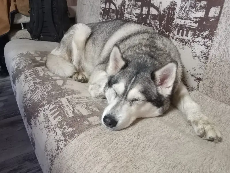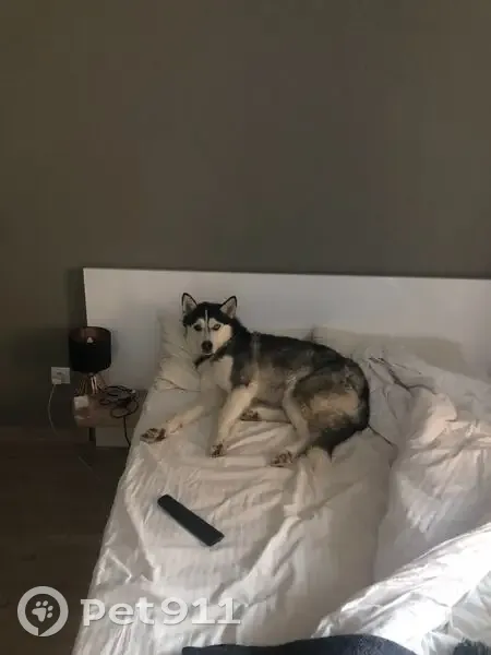 Потерялся хаски, черно белый , не пугливый, дружелюбный, сбежал вместе со шлейкой на проспекте славы/будапештской, побежал в сторону метро проспект славы в районе 17:00