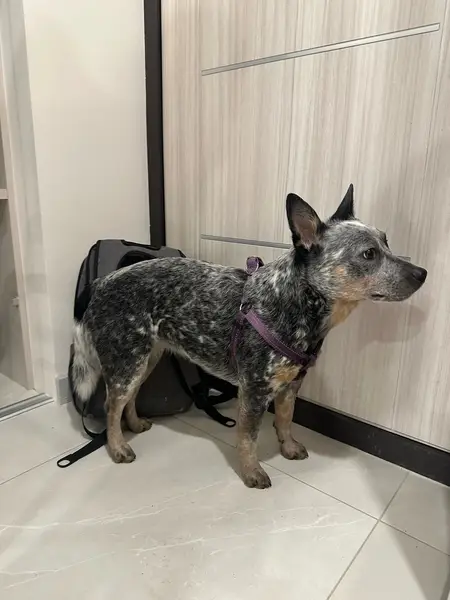 Собаке 8 месяцев. Порода - Австралийский хиллер.Убежал из за звука фейерверков, чипирован, на шее ошейник с номерами. На лице черное пятнышко, на кличку откликается. Пожалуйста помогите найти!!