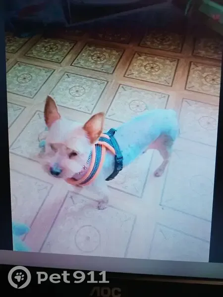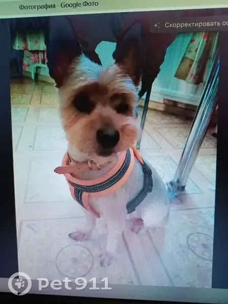 Рыже-серый, убежал во время прогулки за женщиной с собакой. Был в черном наморднике, рыжая шлейка, и ошейник со стразами.