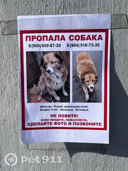 Pet911.ruСанкт-ПетербургПропавшиеСобакиПропал собака, мужской, Новочеркасский проспект, 14, Санкт-Петербург - рыжий длинношёрстный мальчик