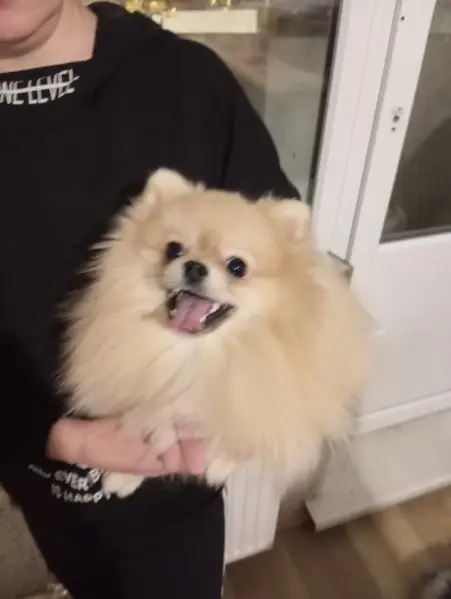 Шпиц, девочка, кличка Капа, 13лет, есть клеймо.