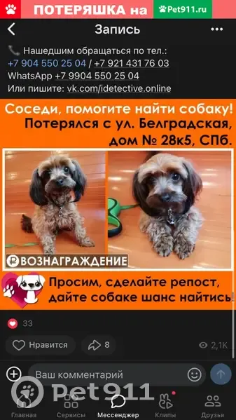 Пропала собака 28.01.2022. помогите найти, если вы нашли его и решили оставить себе, я очень прошу верните это наш любимый член семьи,окрас коричневый уши и хвост черные, есть чип,нуждается в лечении. Вознаграждение хорошее