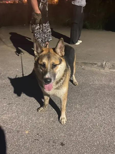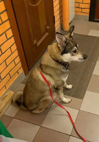 Метис лайки, окрас коричневый с белым и чёрным паттерном, девочка, игривая, ласковая, охотно идёт к людям, прижимает уши. Откликается на имя Земля. К сожалению, она сорвала ошейник с адресником. Пожалуйста позвоните, если видели ее!