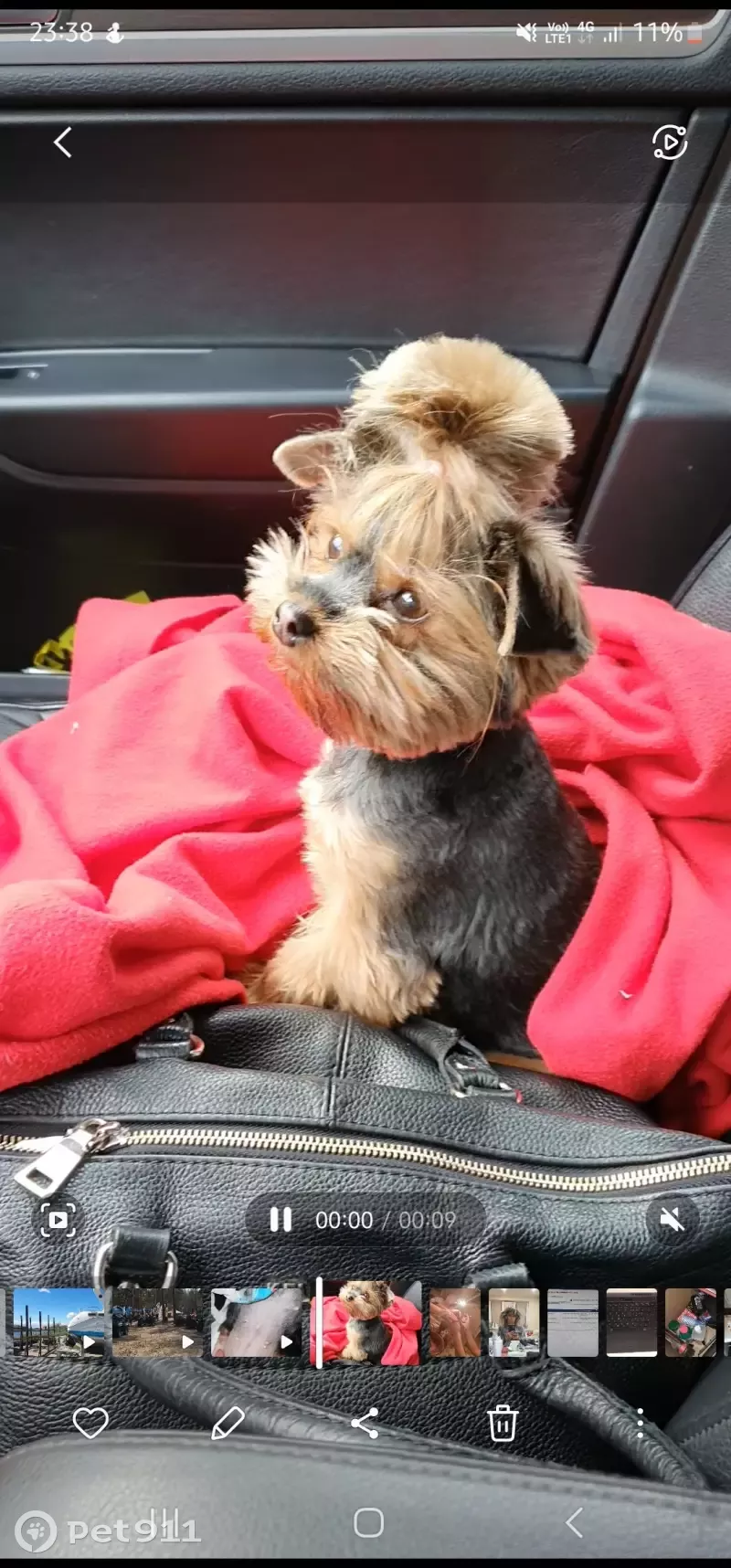 Девочка ,йоркширский терьер , коричнево-золотистый окрас. На носу розовое пятнышко. Ушки висят. На пузике еле заметный шов от операции. Откликается на имя Джесси. Ленинградчкая область , деревня Марьино, Ломоносовский район. В сторону Ропшинского шоссе.