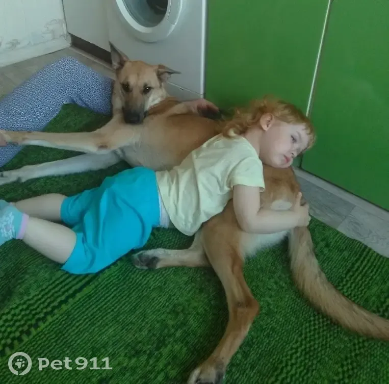 Выбежала из парадной и потерялась сука метис бежевого окраса Рони, рост 65-70 см, большие уши, тонкие лапы.