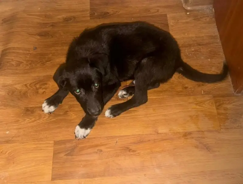 Девочка черная с белой грудкой и белыми носочками, еще щенок, ей меньше года. Дворняжка, ростом с таксу или чуть крупнее. Убежала ночью. Выпрыгнула из машины и помчалась, вероятно, за кем-то. Забежала за угол дома. Я побежал за ней, но уже ее там не было. Обошел все окрестности, но безрезультатно. Громко кричать ночью не стал. Собачников в это время уже не было. Немногие прохожие ее не видели.
