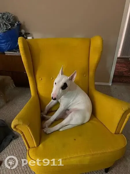 Кобель мини-бультерьера. Дружелюбный, абсолютно не опасный дурноватый, может прыгать и щипаться, но не кусается!