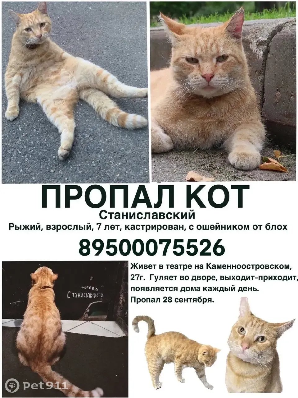 Потерянные животные Санкт-Петербург, фото: Пропала кошка Рыжий, Каменноостровский проспект, 27г