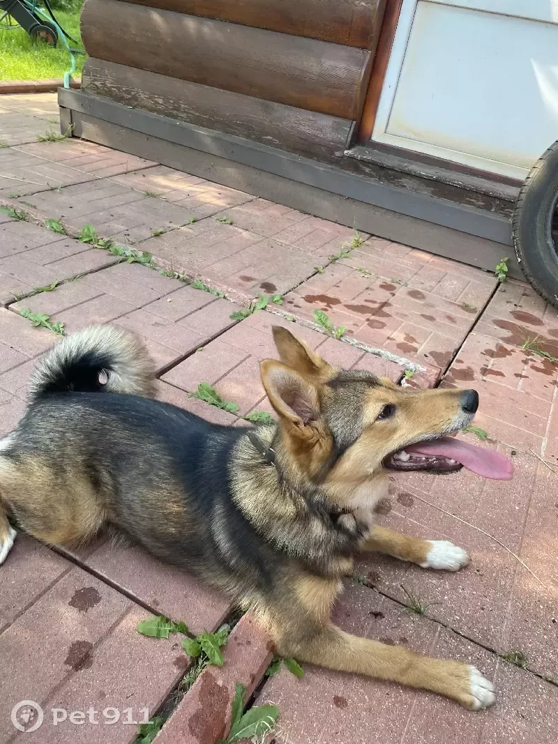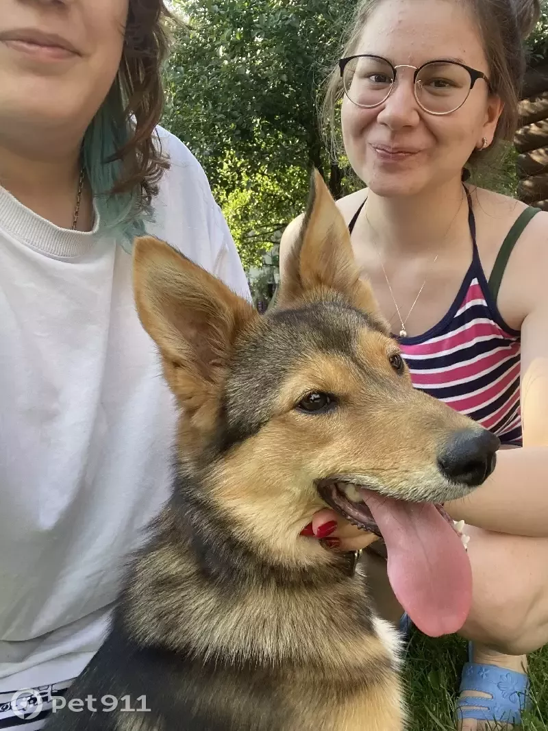 Порода не понятная, похожа на небольшую лайку, хвост колечком, девочка, рыже-чёрная, похожа на чепрачную овчарку, но маленького размера, но вроде не щенок, достаточно взрослая судя по всему дама. Характер очень нежный, дружелюбный, людям доверяет очень сильно, сразу подбежала к нам, начала ластиться и лизать руки, хотела пить. Нашли на поле за СНТ «Архитектор-Ветеран». Собачка очень хорошая, надеюсь, её ищут!