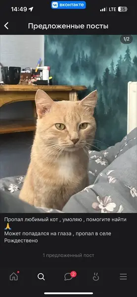 Лихачёва 21, 5 подъезд 2 день к нам в подъезд прибился котик-подросток (месяцев 4-6). Светло-рыжего цвета, очень интересный окрас (камера не передаёт), глаза янтарные. Чистый, тянется к людям. Явно домашний. Возможно, убежал у кого-то из соседних домов. Потому что в домовом чате хозяин не отозвался. Район 30 и 32 школы.