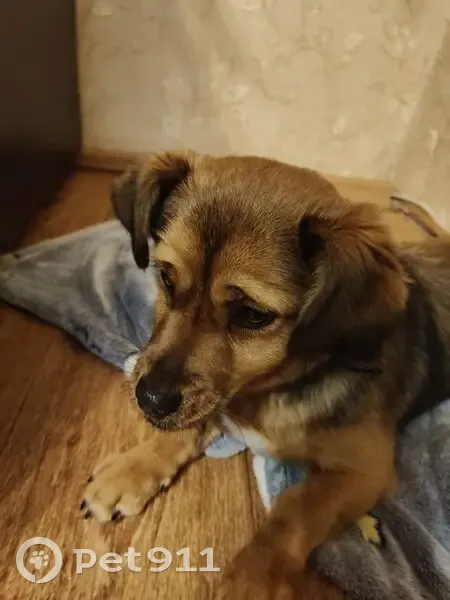 На проезжей части около остановки Есенина металась собака, короткие лапы, окрас рыжий с чёрными полосками. Очень ласковая, играет, пугается резких движений.