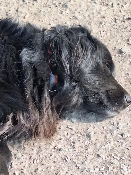 Черный песс милой мордочкой случайно увидили наулице с ошейником подумали что чейто