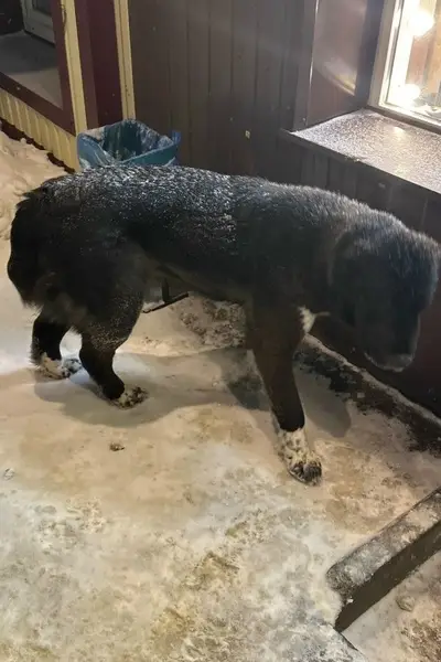 Мальчик, окрас чёрный с белыми лапками и грудкой. Ушки висят. Спокойный. Упитанный. Ходил за похожими. Два раз чуть не попал под колеса машины. К ошейнику и поводу не приучен. Такое чувство, что сбежал с часного дома.