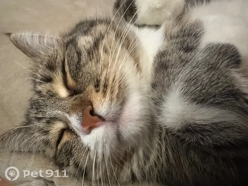 Черный хвост, толстая, ухоженная, шерсть блестит, под хвостом выстрежено у грумера, кисточки на ушах, пол носа белые. Предположительно выпрыгнула с окна 1го этажа, т. К. Сетка москитная оказалась не закреплена