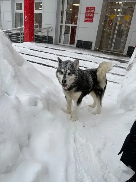 Собака породы хаски, ходит по улице, с ошейником. Хозяева отзовитесь