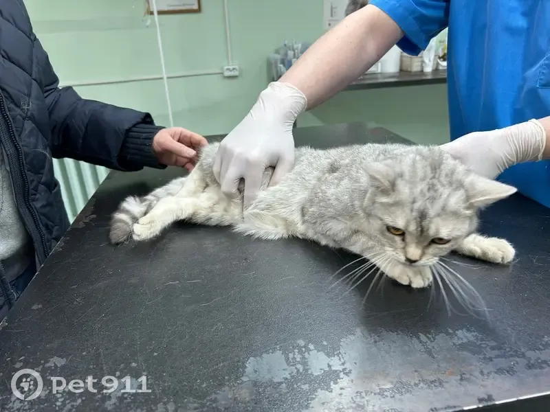 Кошечка была найдена между плитами в заборе. По итогу осмотра ветеринаром была назначена терапия. Кошечка молодая, по окрасу напоминает серебристую шиншиллу