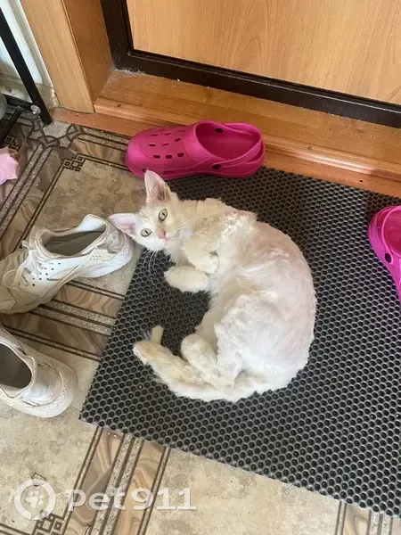 Белая стриженная кошечка на вид месяцев 8 ей . Большие мендалевидные глаза , передние лапки чуть косолапые . Обрастет будет очень пушистой. Убежала в подвал утром и больше мы ее найти не смогли , она домашняя . Очень доверчивая идет ко всем людям , голос писклявый . Прошу вернуть за вознаграждение ! Мы ее очень любим и ждём . Очень сильно скучает по ней старшая кошка.