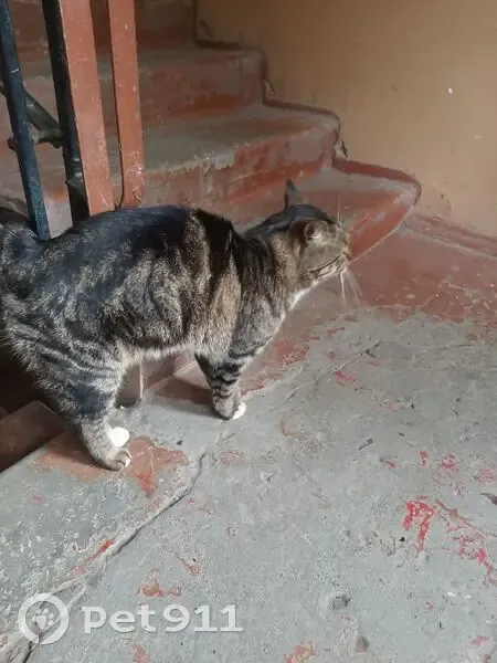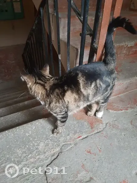 Найден молодой кот красивой окраски. Недавно появился в подъезде нашего дома, скорее всего потерялся, так как котик очень общительный, ласковый и умный, только напуган. Пожалуйста, помогите найти ему хозяина. Многие жильцы не довольны и скоро выгонят его на улицу.
