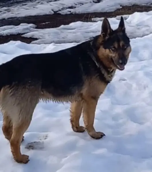 Найдена собака в районе Дворца спорта на Чернышевской - немецкая овчарка, девочка черно-подпалая, на правом ухе есть клеймо, послушная, знает команды, невысокая в холке, возраст - немного больше года, пока забрали ее домой. Кто знает собачку - звоните ...