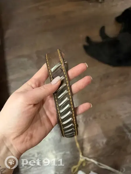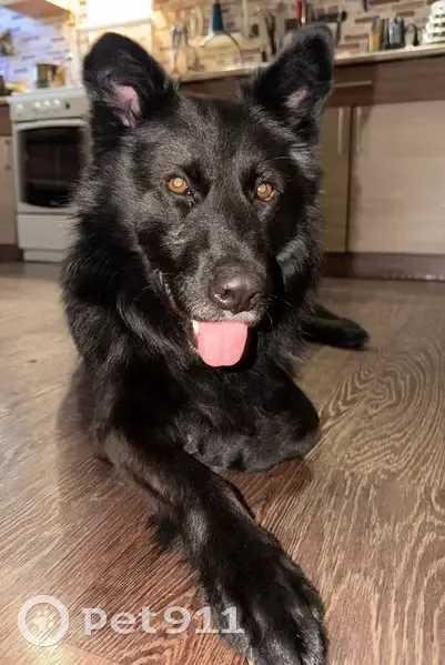 Черный, длинная шерсть, белое пятно на груди. С ошейником, ухоженный
