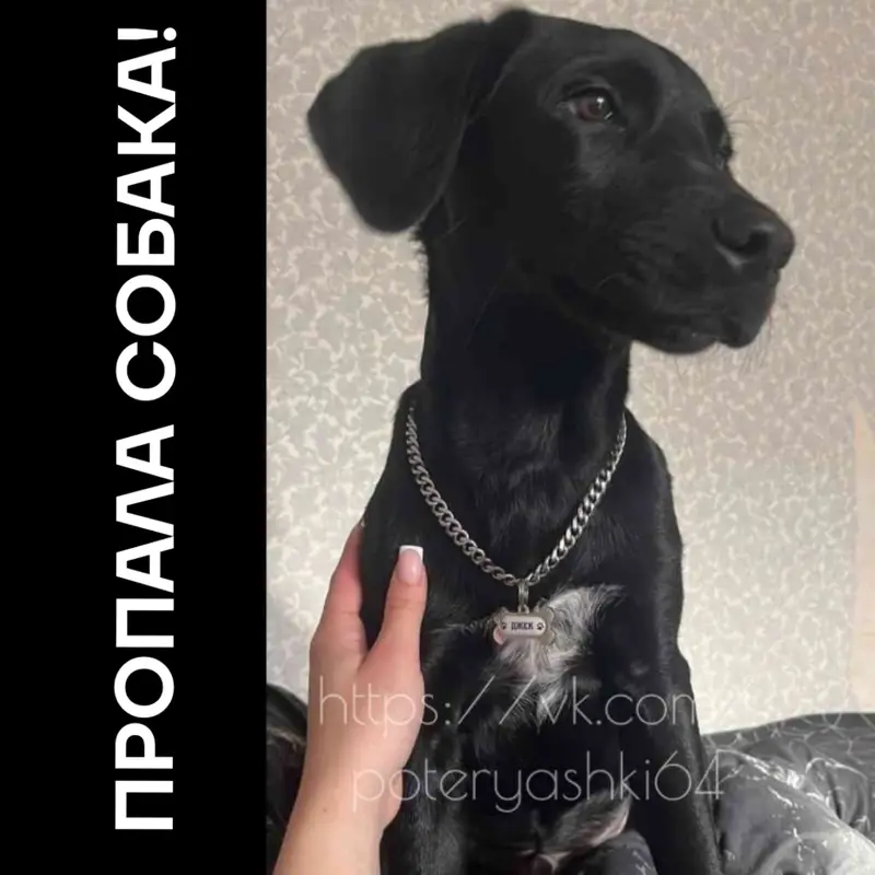 Саратов. Ищу хозяев чёрного Курцхаара. Был найден в районе сквера «Рубин» (район СХИ). Коричневый ошейник с розовой лямкой и надписями ручкой на нем.