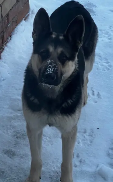 Очень похожа на овчарку,сука,на вид 7,8 месяцев,клейма на пузе нет,ошейник защитного цвета с кожаной вставкой,знает комманды сидеть,фу,нельзя,место.адекватная по поведению,добродушная.