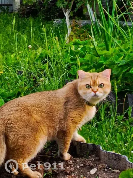 Британский кот , окрас золотистая шиншилла, глаза изумрудно зеленые, кастрирован. Домашний, но улицу любит (под присмотром). Шмыгнул в открытую дверь и не вернулся...
