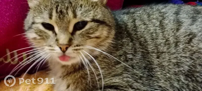 Пропала кошка Маруся,окрас серо- полосатая,зелёные глаза,носик светло-коричневый,мордочка вокруг рта белая,особенность:показывает язычек ,в центре живота на ощупь небольшая грыжа.