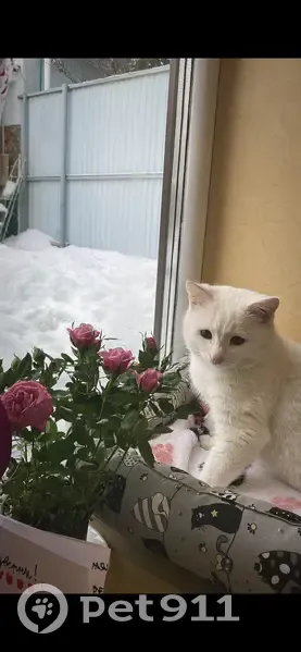 Полностью белый пушистый ласковый и добрый. Вечером убежал гулять и не вернулся. Пропал уже давно, но я очень верю, что он все таки где-то может потерялся.