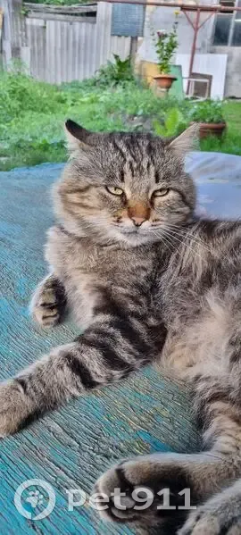 Взрослый кот, пушистый, большой,мощные лапы,на мордочке, чёткие линии,каа у тигра,хвост не очень пушистый, к чужим подходит редко.Гуляет часто, тк частный дом, но в этот раз уже долго нет.Район Улиц Прудная, Фруктовая.