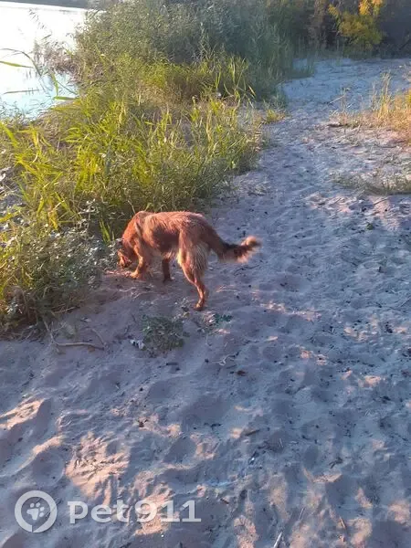Рыжая, среднего размера, похожа на лису, около полутора лет, ласковая, беспокойная, в ошейнике,была сторожевой собакой на городском пляже ,убежала в середине октября, вероятно, в сторону Энгельса