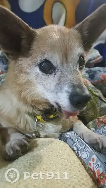 Рыженький возрастной пёсик, слабом слышали и видящий, язык набоку ,беззубый, к чужим не подойдет, не компаннйский, ушел к вечеру по темноте, мог просто заблудиться, ждем бедолага домой