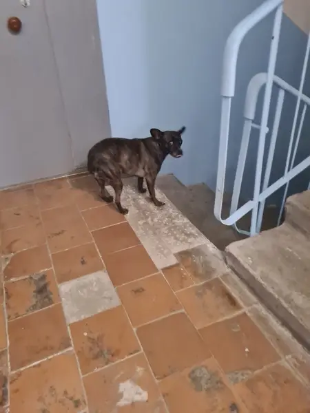 Окрас чёрный,лапы коричневые,глаза карие,упитанный,без ошейника был один на ул.Звездной,высматривала хозяев,никто не отозвался,породой похож на той терьера,может какая-то помесь.