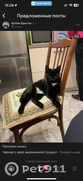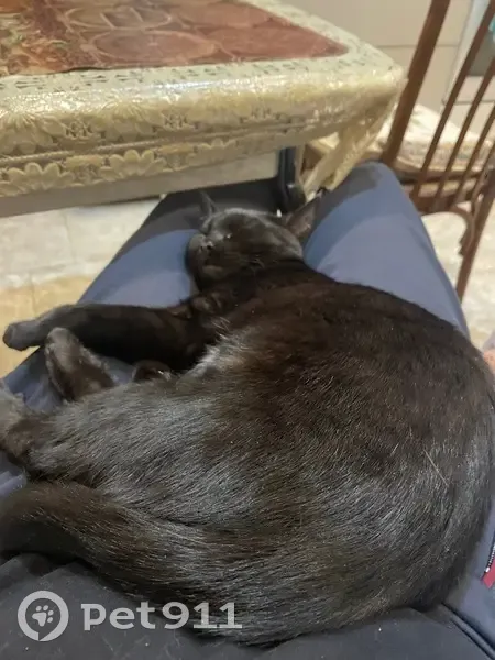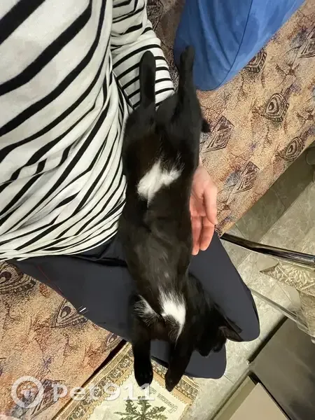 Черная с ярко выраженной грудкой и животиком белого цвета. На животике с левой стороны клочок коричневых волос. Есть кисточки на ушках. Длинная, не толстая. Возраст 7 месяцев. При возможном контакте может слегка прикусить ручки и царапнуть. Кошка привита и чипирована. Ушла из квартиры, после из четвертого подъезда Негина 26.
