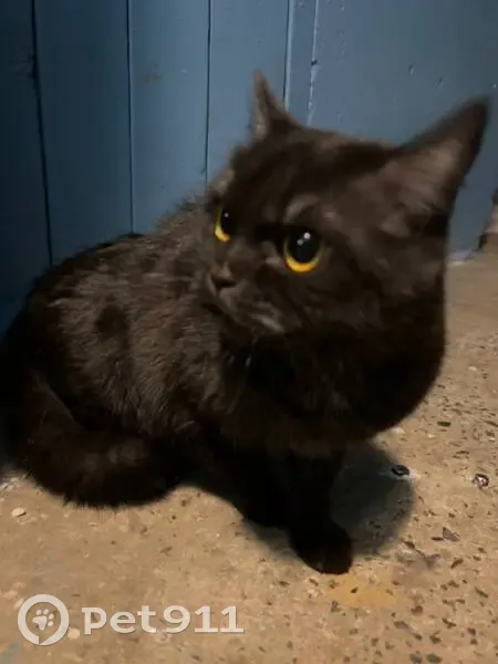 черный окрас, морда слегка преплюснута, ярко оранжевые глаза, маленькая. Ищем хозяина старого или нового, у себя не можем оставить, кот против