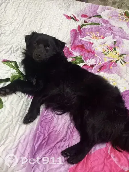 Черная, маленькое белое пятно на груди. Собака не большая, по размеру примерно как бигль, молодая зубы без камня, воспитанная, знает команды, комнатная. Предпочитает корм. Помыла, обработала от клеща. Оставила на улице.