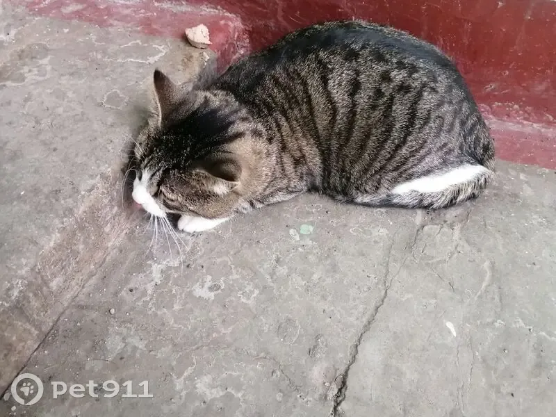 Найдена кошка, проспект Ленина, 89, Красное Село - серая полосатая, белый край мордочки